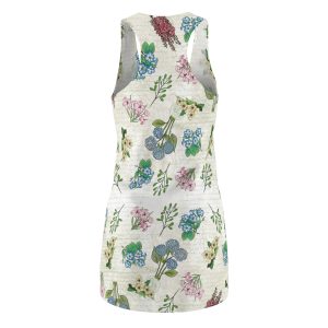 Price range: $36.40 through $37.35XS S M L XL Width (at bottom hem), in 19.02 20.00 21.02 22.01 23.03 Width (at chest), in 15.00 15.98 17.01 17.99 19.02 Length (front HSP), in 32.01 32.99 33.50 34.02 34.49 This beautiful hand drawn flower pattern pastel dainty florals racer back dress exudes a delicate and feminine vibe. Perfect for a…