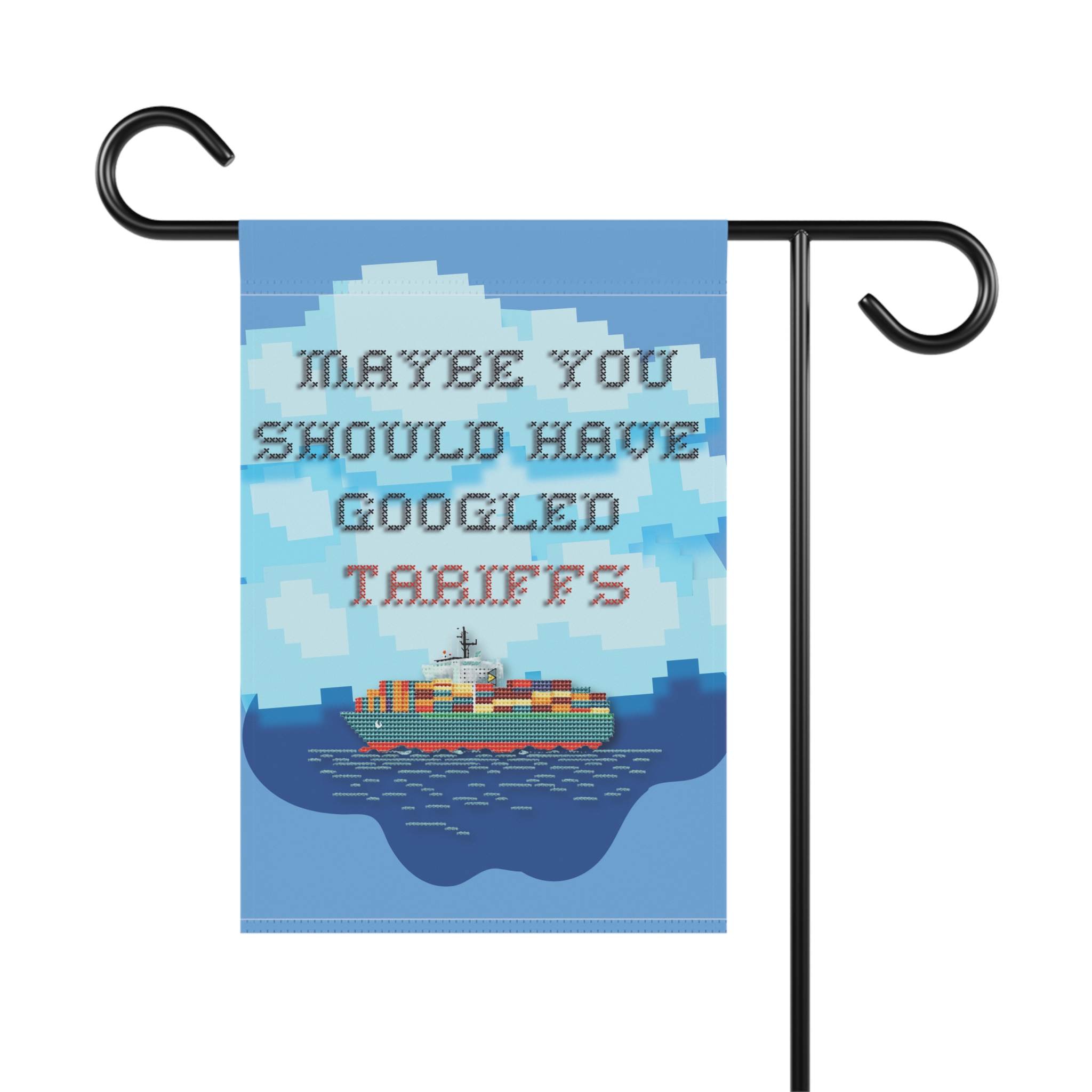 Funny Resistance Garden Flag – “Maybe You Should Have Googled Tariffs” – Vintage Cross Stitch Style Democrat Decoration